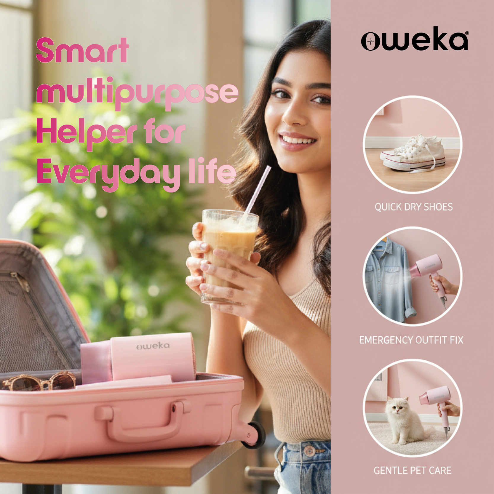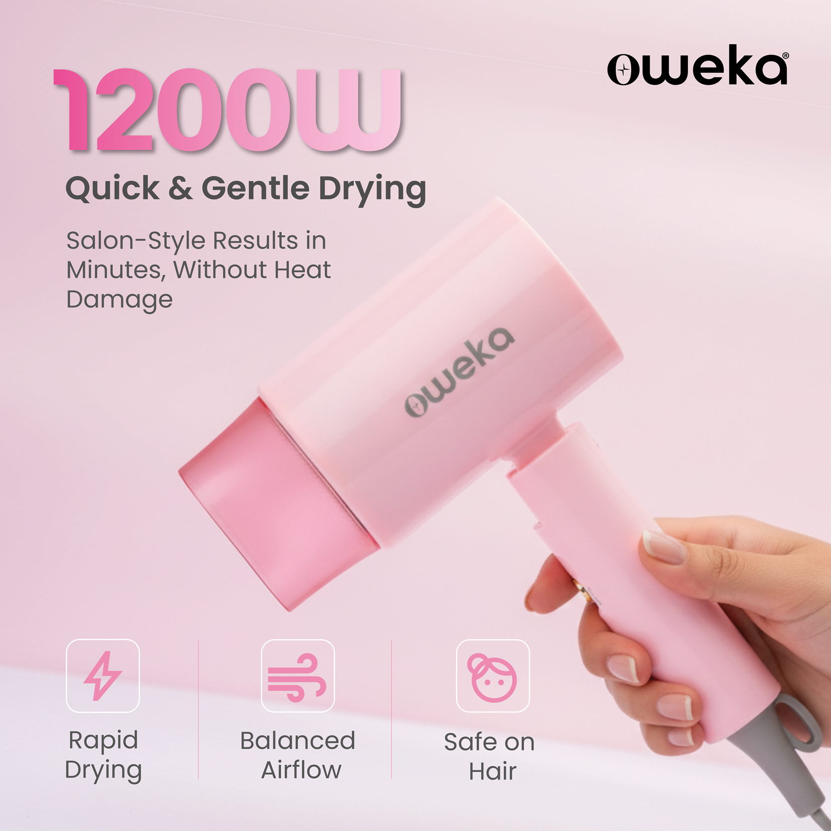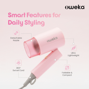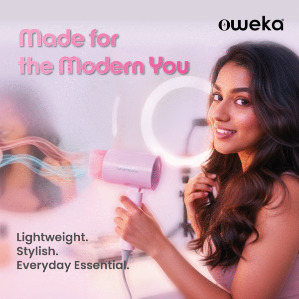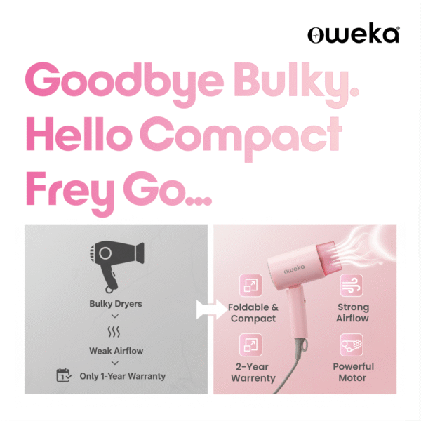 Meet Frey Go — your easy, lightweight styling partner for quick touch-ups and everyday drying. With 1200W of smooth power, adjustable heat & speed, and a foldable design, it’s perfect for busy mornings, hostel life, or packing light. Its playful injection pink finish and compact build keep your style fresh without the fuss.