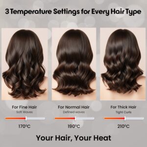 • Perfect Timing: An audible “hair-ready” chime indicates when each curl is perfectly set.