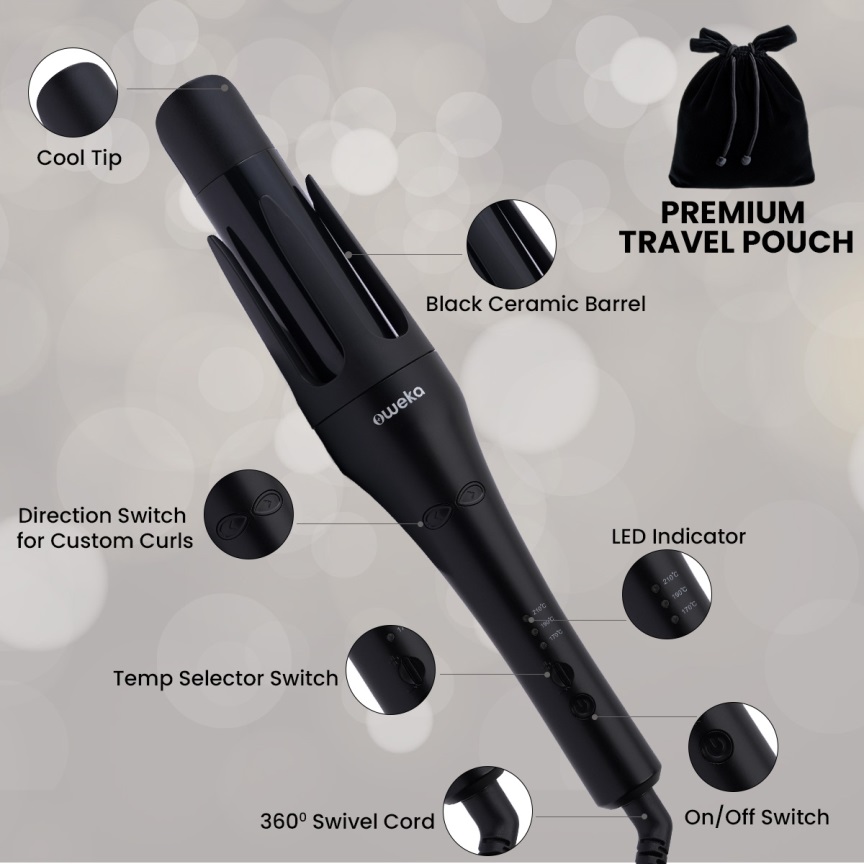 Oweka Kurl Pro Automatic Rotation Hair Curler, Dual Direction, Matte Black