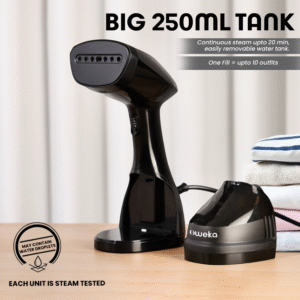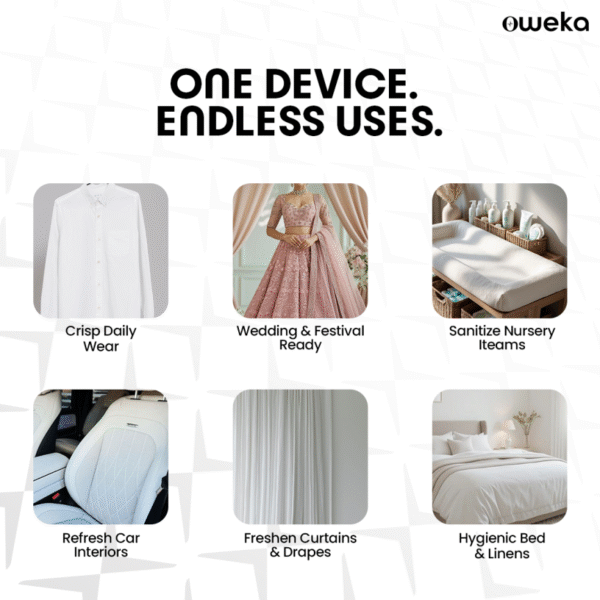 More than a steamer, it’s total fabric care. The Steamiq Pro powerfully unwrinkles, refreshes, and sanitizes everything from delicate silks to sofas and soft toys. Our zero-burn guarantee means it’s 100% safe on all fabrics. Engage the steam lock for an effortless, continuous flow of pure steam.